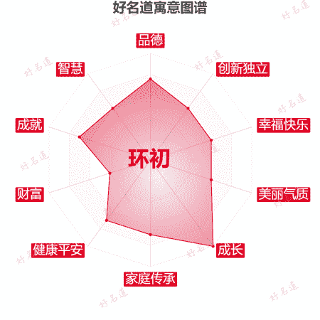 5.成长寓意:环字寓意着包围、保护,与成长中的稳健前行、步步高升有关初字寓意新的开始,与成长中的茁壮成长、不断进步等维度有关
